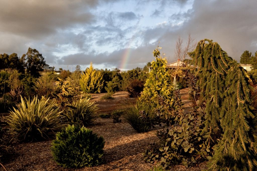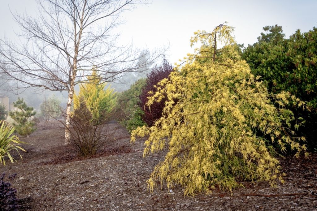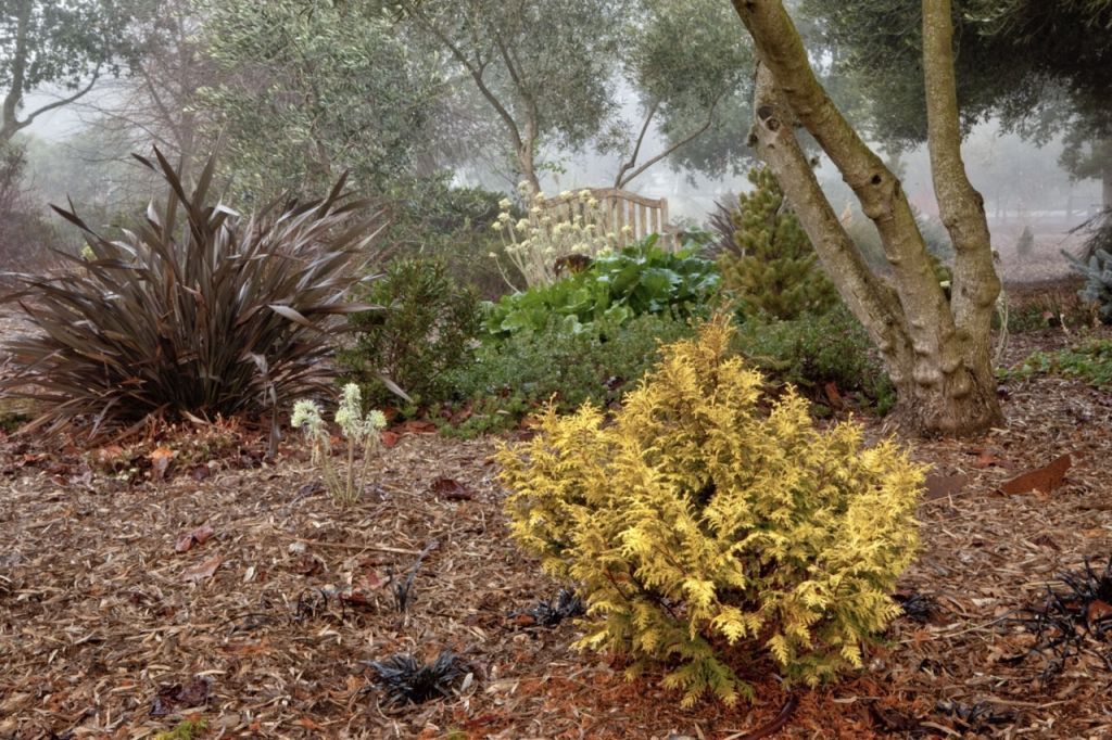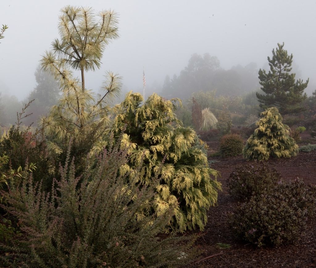 Most golden evergreens are conifers, and there is a seemingly endless array of choices. Those that follow are selections that we have grown and know well; there are many, many others, so use these as suggestions and explore the available offerings in your area. We have tried to include a little something for everyone: large and small, upright and weeping, bold and demure. Many of our choices will grow in zones with much colder winters than our Zone 9b.