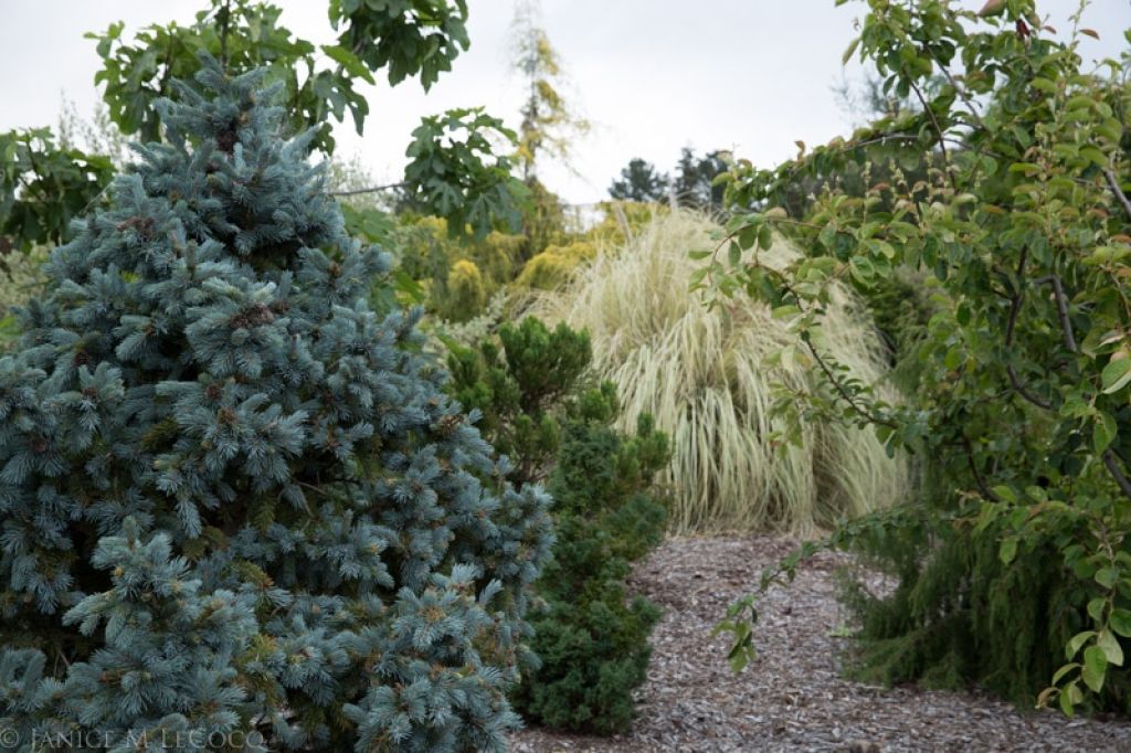 Picea pungens (Colorado blue spruce) has so many cultivars that it is hard to keep track. ‘Lucretia’, pictured above, is one of the smaller, slower-growing introductions that is easy to keep to a manageable size.