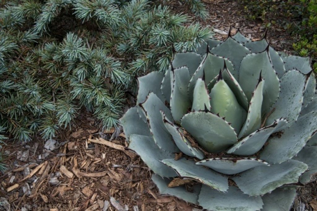 The idea of interplanting succulents with conifers and other foliage plants strikes some as odd if not downright unnatural. To get a taste of how Nature herself does it, visit a forest in Mexico and see Yucca and Agave growing side by side with pines and cypress. We think of Mexico as a succulent haven when in fact Mexico also has more native pine species than any other country. Many of our perceived design rules are products of our own traditions and not necessarily representative of what is possible or, indeed, even plentiful in Nature.