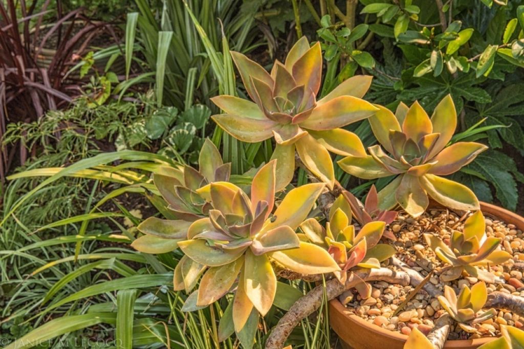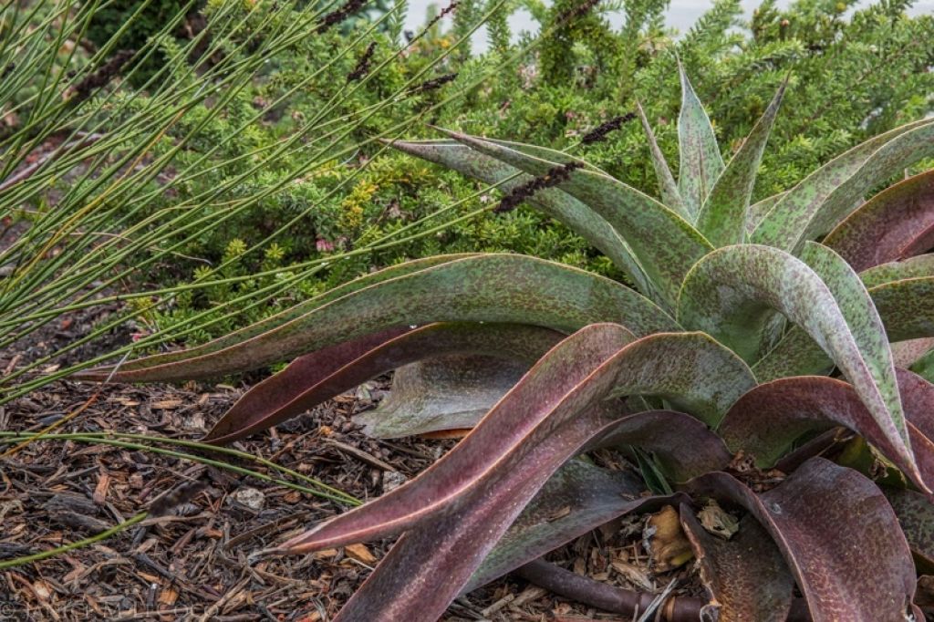 Most succulents do not like to be cold and wet at the same time, a challenge for those in Mediterranean climates. Mounding with pebbles or judicious use of containers generally works to provide enough drainage for all but the fussiest plants. Planting next to a hardscape that warms quickly in winter sun can also create a more friendly microclimate.