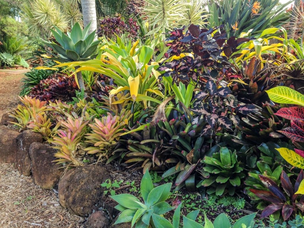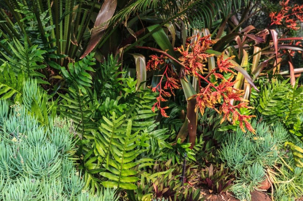 While the plants in tropical gardens are vastly different than their temperate cousins (most are not even the same genera), design and color principles are the same, and year-round interest is the norm.