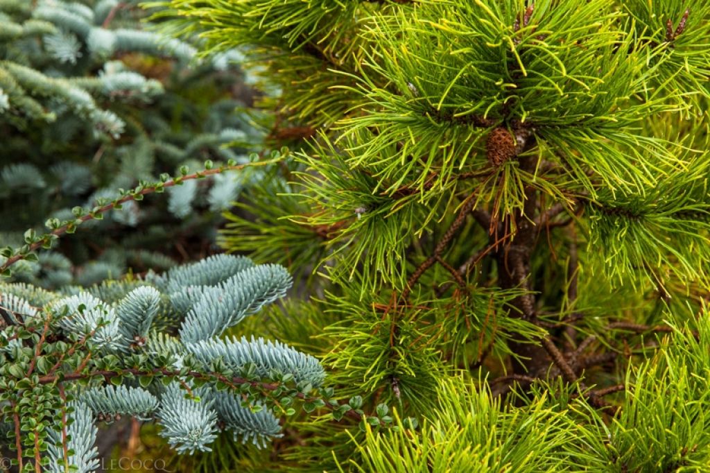 Sometimes a single texture can be on display as with the Serbian spruce above. The foliage begs to be touched.