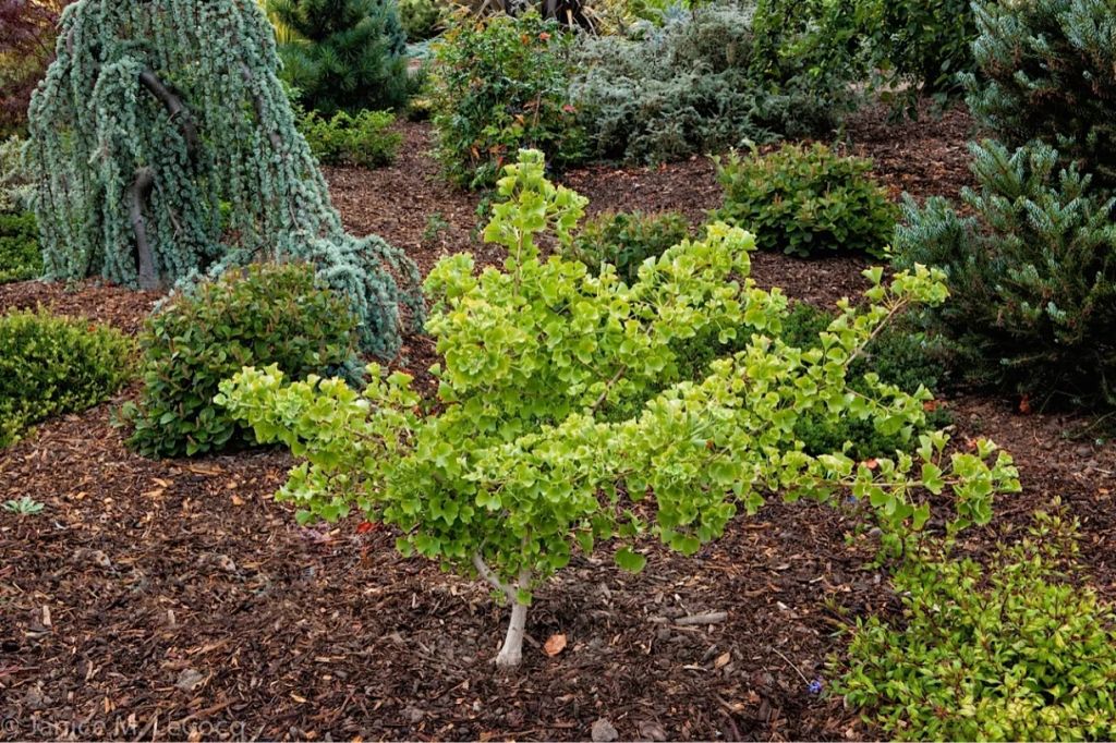 2. Next is our favorite dwarf Ginkgo biloba, ‘Todd’s Dwarf’ (Zone 3-10). Ginkgo are ancient trees that have barely changed over the millennia. Where they have changed, man has been the manipulator, cultivating naturally occurring mutations and interesting chance seedlings and producing numerous garden-sized small trees. The species Ginkgo, albeit slow-growing, attains heights of 70-80 feet, while these petite versions are often under 4′ at 10 years. They have interesting branching and leaf variations although all retain a semblance of the iconic ‘butterfly’ leaf shape. Our favorite is ‘Todd’s Dwarf, due to its full habit ruffled leaves, but there are many others, such as ‘Mariken’, ‘Troll’, ‘Munchkin’, ‘Jade Butterfly’ and ‘Chase Manhattan’. They all turn butter-yellow in autumn and generally drop their leaves all at once, making a glowing carpet. Four of these tough trees survived the atomic blast at Hiroshima, and they can withstand heat, cold, drought and pollution. They are some of the easiest care, low maintenance garden plants.