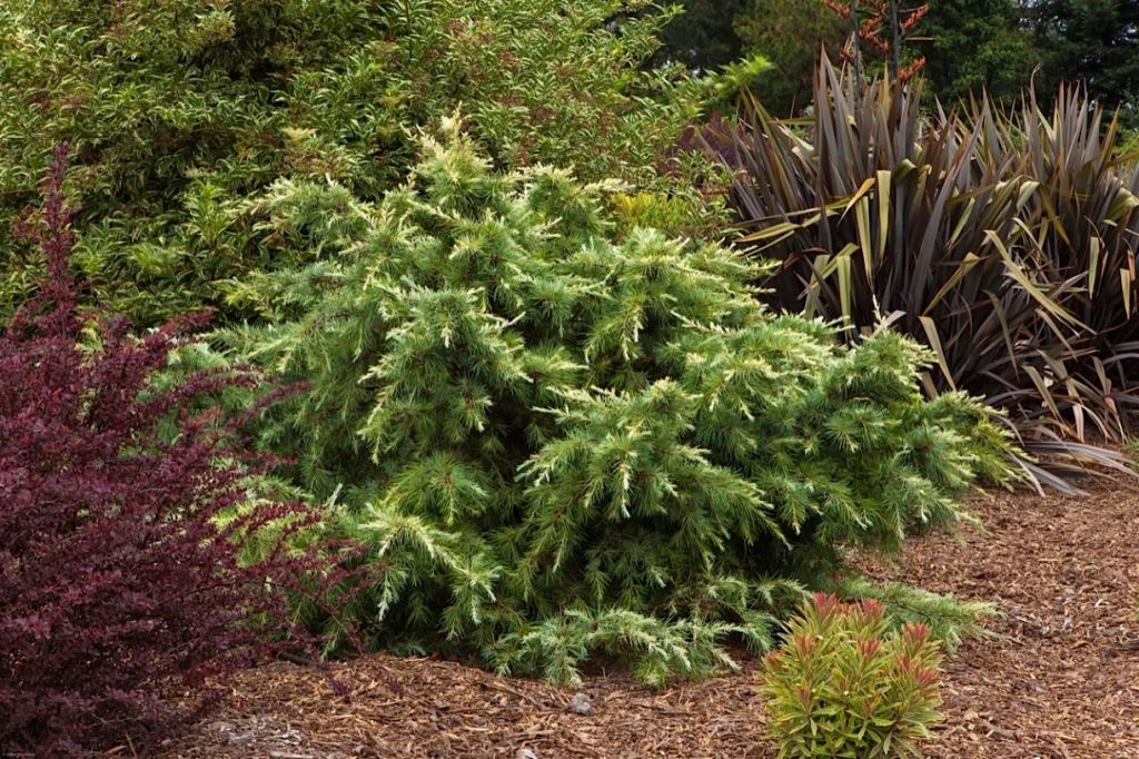 Up close, the needles look like they have been flocked or frosted. ‘Cream Puff’ is slow-growing and can be kept to shrub form, as the one above, by snipping out any leaders that may form.