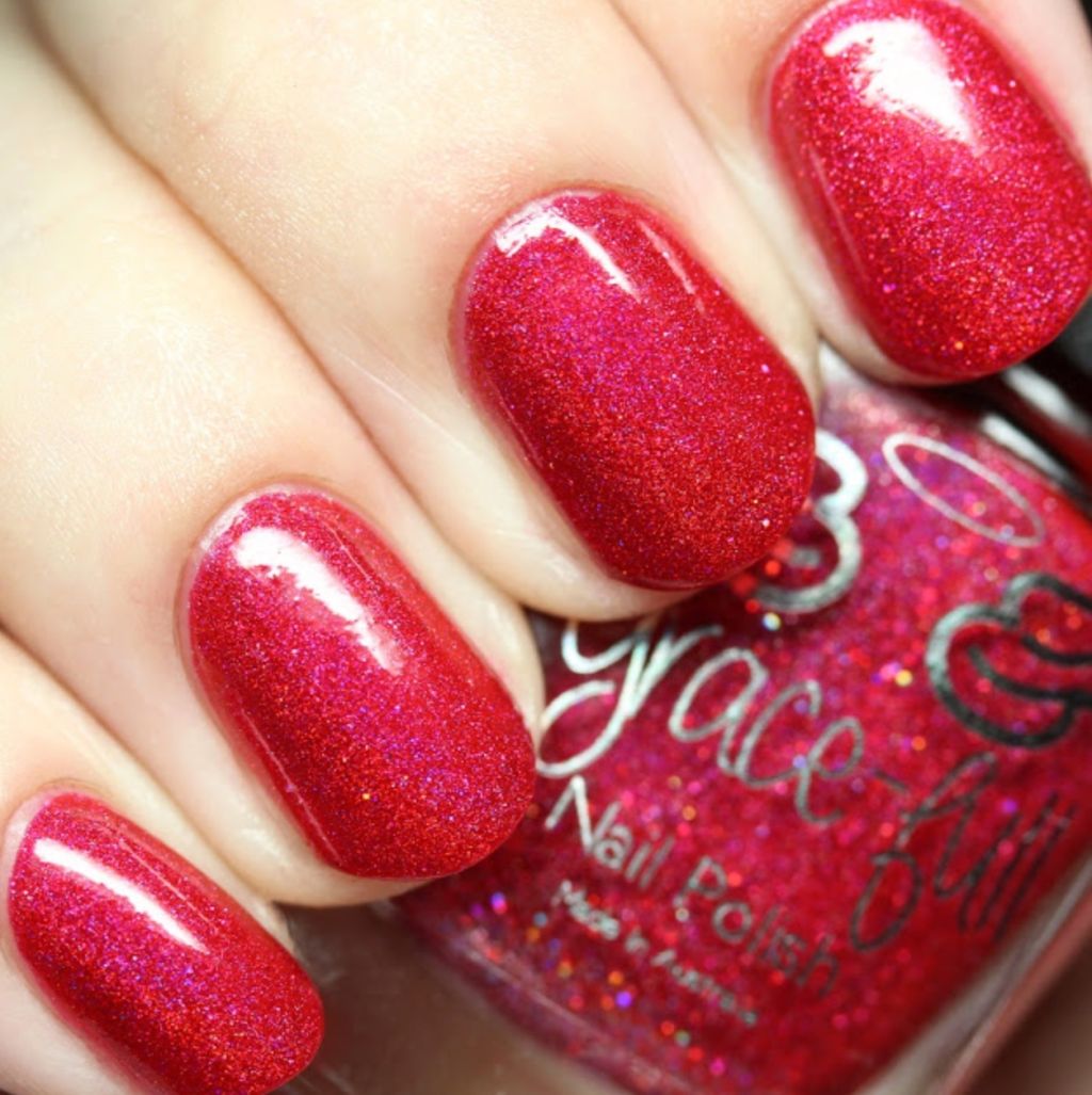 Now that we’re all dressed, a bit of cosmetic enhancement is in order. Lipstick, nail polish and blush, in the wintery shade of brilliant red.