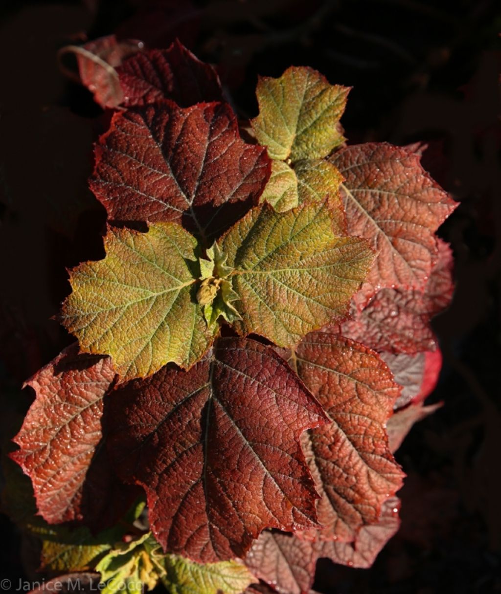 The subdued, workmanlike tweed needs a bit of livening up, so we looked for something peppier to pair it with. Perhaps the tapestry of winter-tinged leaves of Hydrangea quercifolia? The oak-leaf hydrangea is the only member of its clan that can take full sun and doesn’t require a lot of water, making it suitable for drought-tolerant gardens. We think that the winter foliage beats the summer bloom: