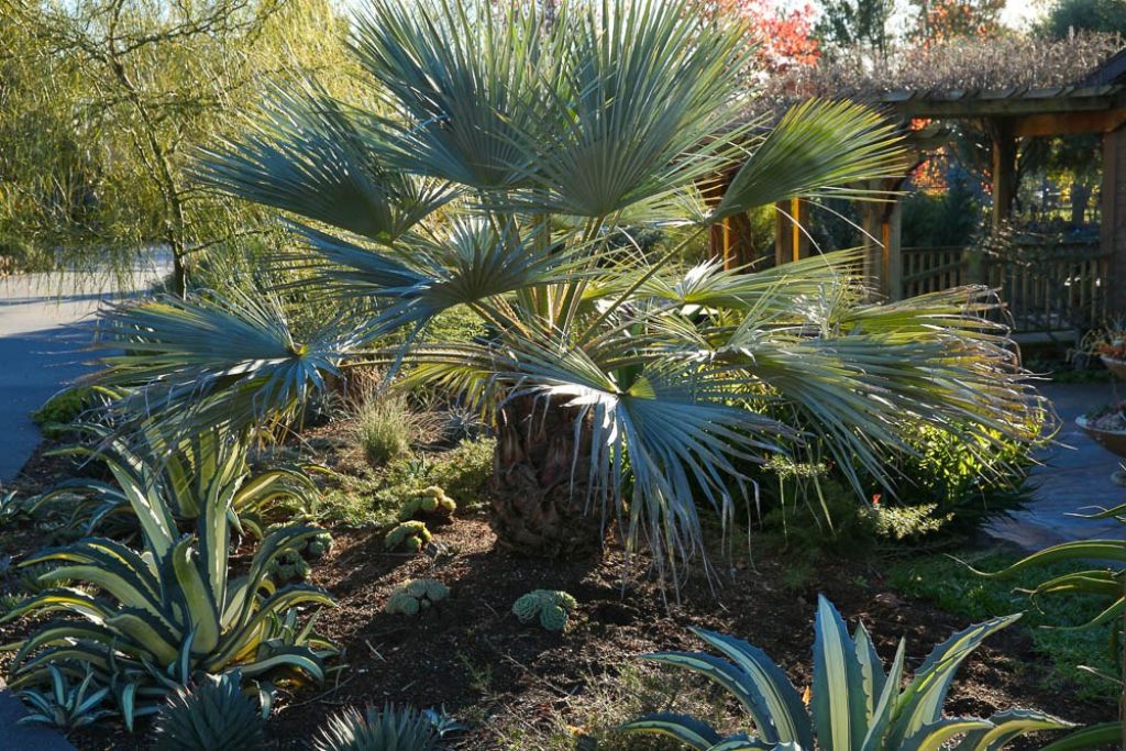 And now, the finishing touch. We’re completing our outfit with a fan. We just have to choose which one. This Brahea armata is simply loaded with them.