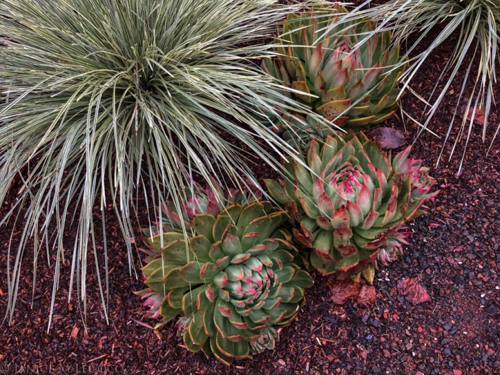 Like many conifers, a goodly number of succulents take on added hues in winter. The Echeveria agavoides‘Prolifera'(Zone 9) pictured above looks like it is wearing nail polish, but it’s just its response to colder weather. The Lomandra ‘Platinum Beauty’, (Zone 8) on the other hand, is always beautiful!
